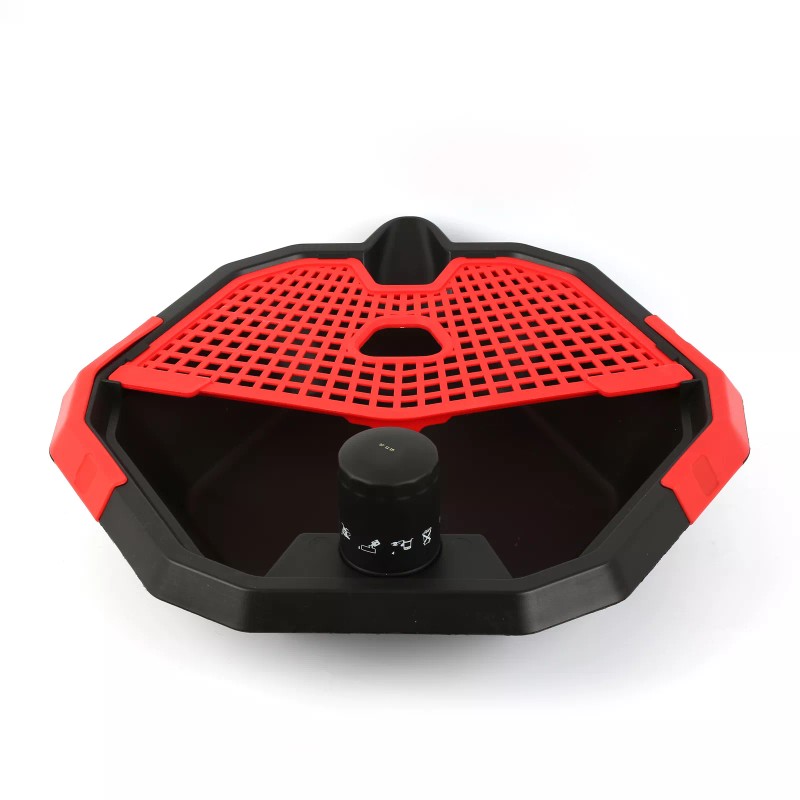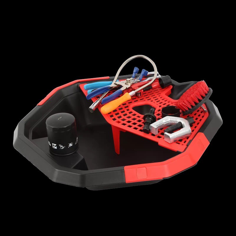 Use together when changing oil, or separately keeping your tools organized while under the car. Mesh top to hold the drain plug, molded pour spout for easy draining