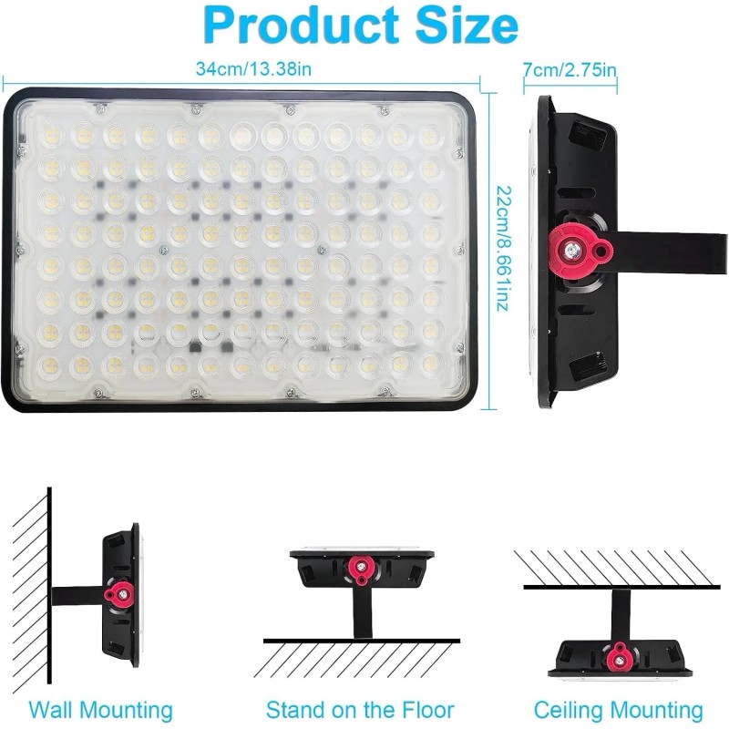 - 【Flexible Installation】The Led Outdoor FloodLight is designed for outdoor use and is equipped with a sturdy bracket for simple and convenient installation. The 180° adjustable metal bracket allows you to freely position the light according to your specific needs. Whether it is ceiling, wall, floor or bracket installation, you can install it easily and flexibly.