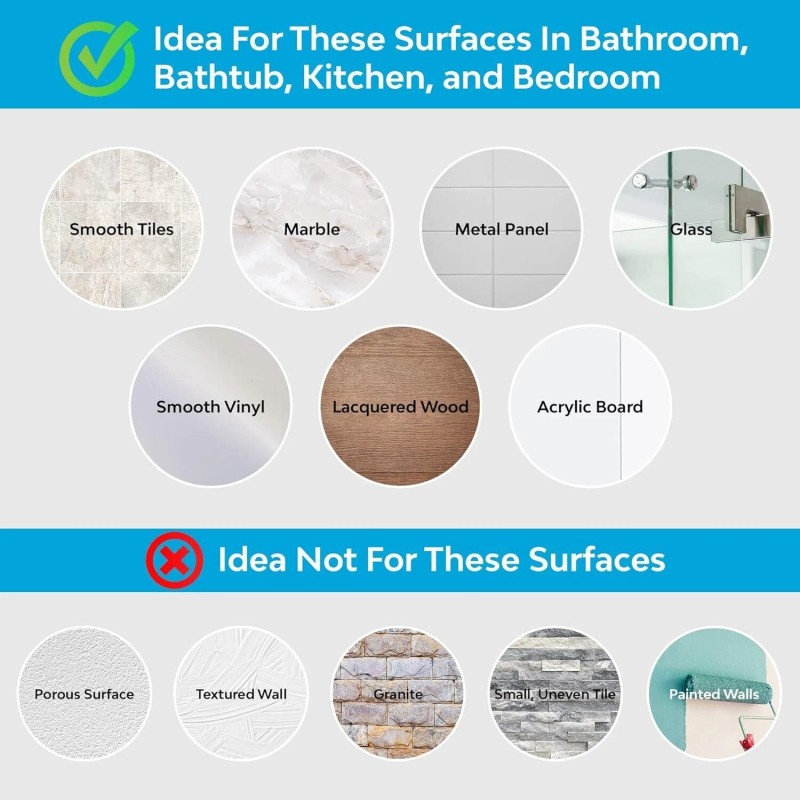 - Multipurpose Sturdy Design: These suction handles for bath are perfect for the elderly, pregnant women, children, injured, and disabled in the kitchen, bathroom, and toilet. Our suction handles can be used on any non-porous and flat surface like tiles, glass, acrylic, and metal. It's essential to clean and dry the surface thoroughly before installation to ensure a smooth, porous-free surface.