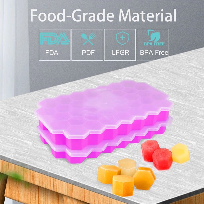 Unbranded 2 Pack Silicone Ice Cube Tray with Lid 74 cell Durable Stackable Ice Cube Trays