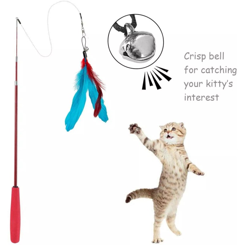 - The feathers attachment with bells can catch cat’s interest. When you shake it, it will give off sound of wings and fly like a bird to make the cat instantly excited