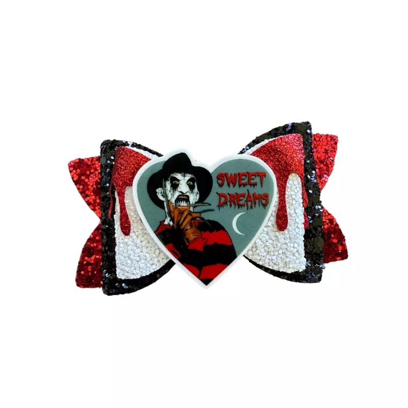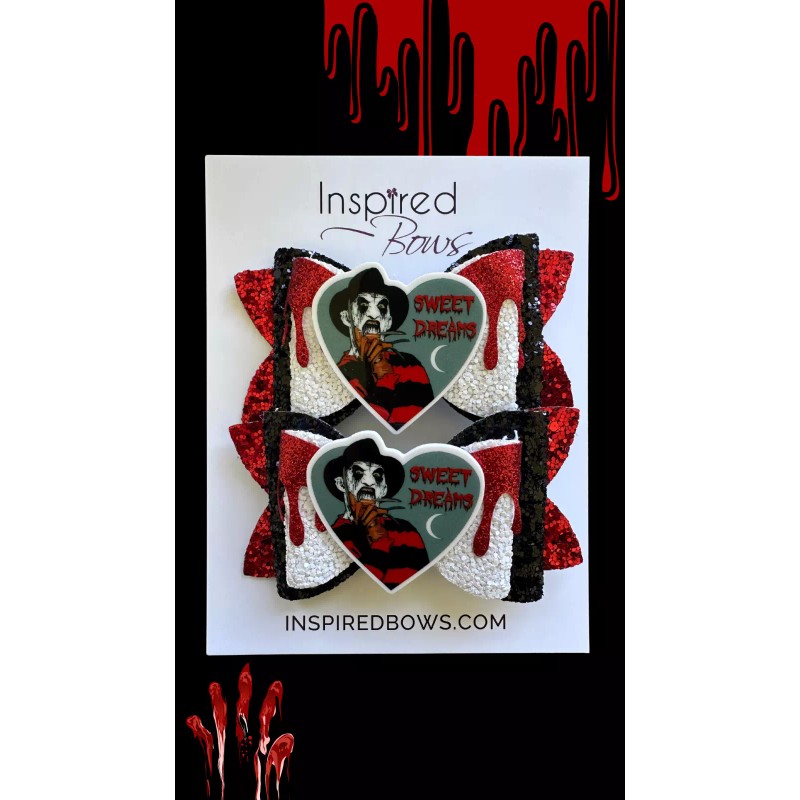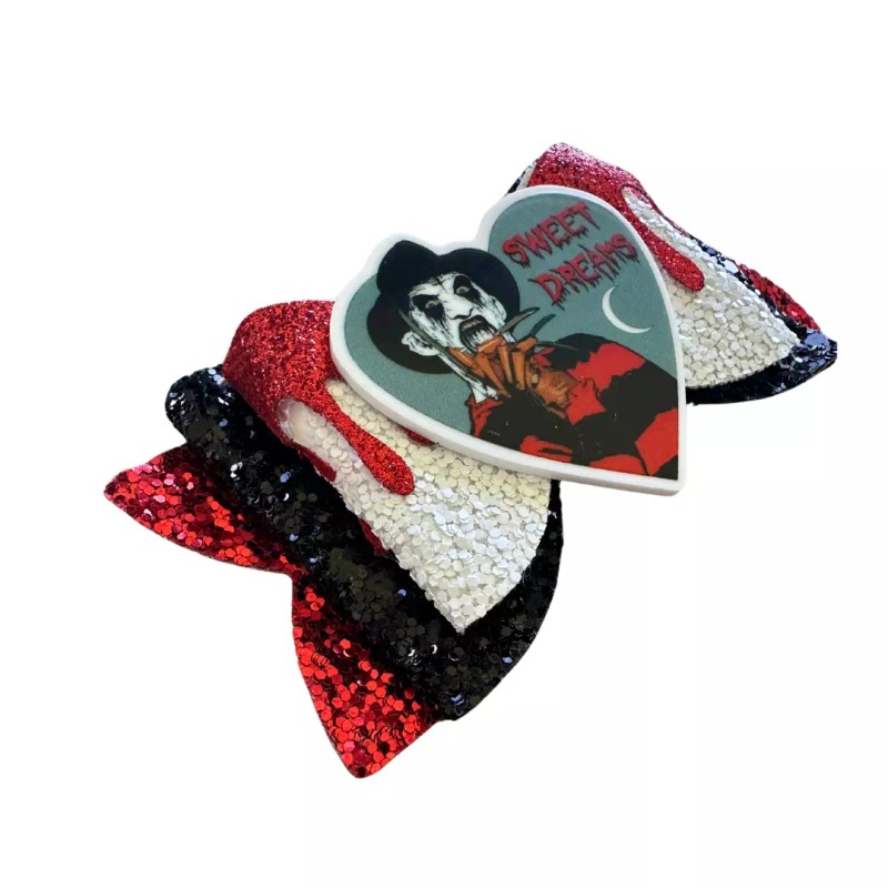 Unbranded 2 Piece Scary Movie Inspired Sequin Hair Bow Set ( 2 bows ) on Alligator Clip