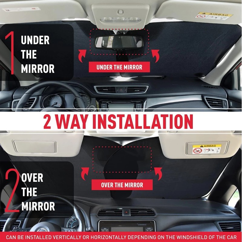 - Innovative 2-Piece Design: Each sunshade measures 28 x 31 inches (71 x 79 cm), allowing for versatile installation either vertically or horizontally, accommodating most standard cars, mid-size SUVs, trucks, and sedans.