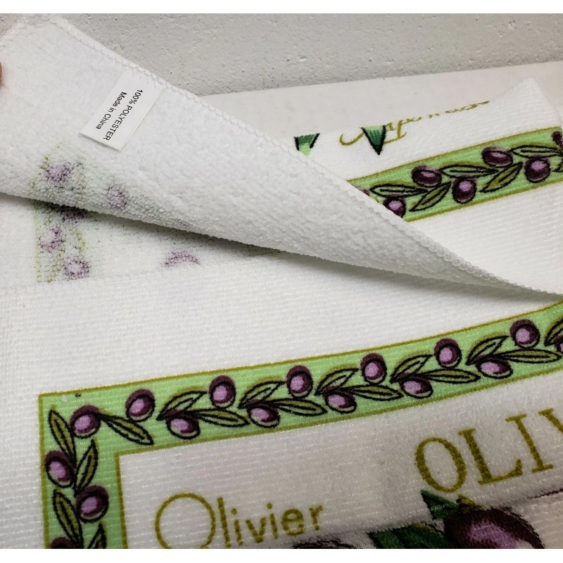 I'm selling SET OF 2 SAME KITCHEN MICROFIBER TOWELS (15" x 25") BLACK OLIVES as shown on the pictures.