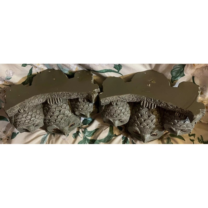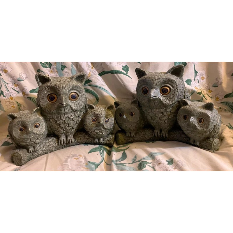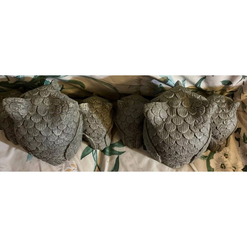 Unbranded 2 VTG Owls Garden Statues- RESIN Light Gray - never used (mother and 2 babies)