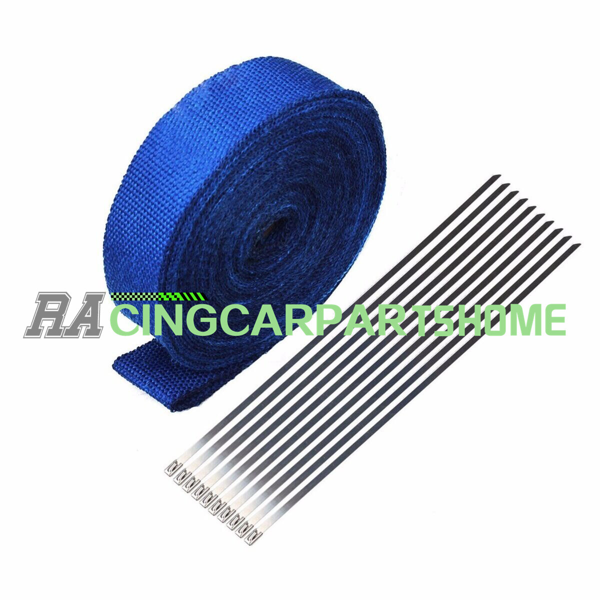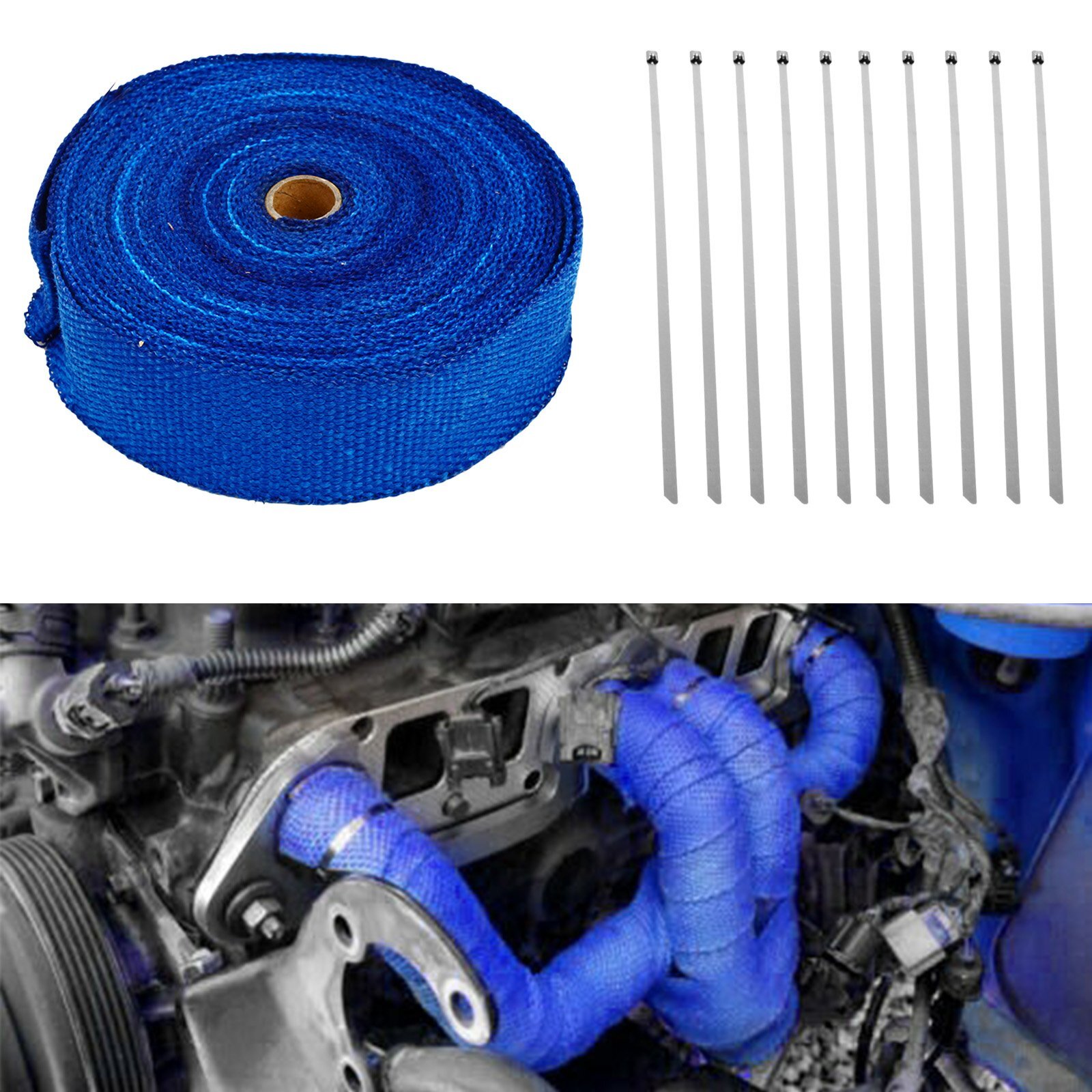 2" x 50FT Roll Blue Fiberglass Exhaust Header Pipe Heat Wrap Tape w/ 10pcs Ties