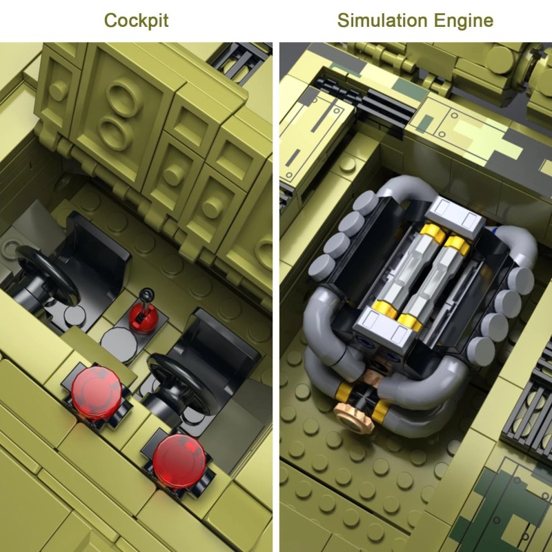 - Our tank toy bircks feature a rotatable turret, dual-seat cockpit, realistic engine compartment and an adjustable gun barrel, made of 2046 PCS harmless ABS plastic, safe and durable,compatible with major brands