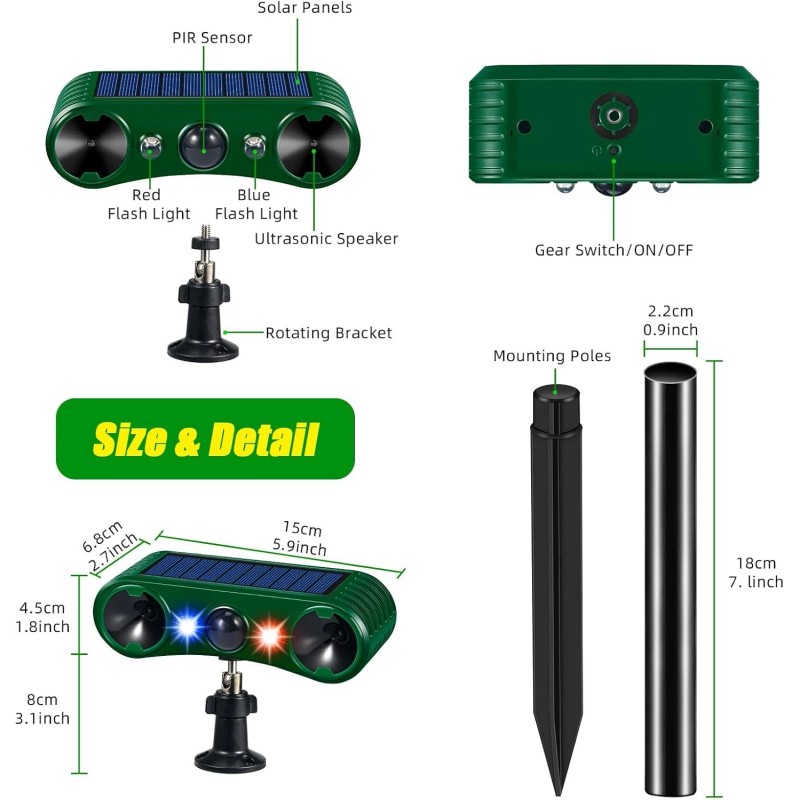 Unbranded 2024 Newest Ultrasonic Animal Repellent-PIR Sensor & Red/Blue Flashing Light