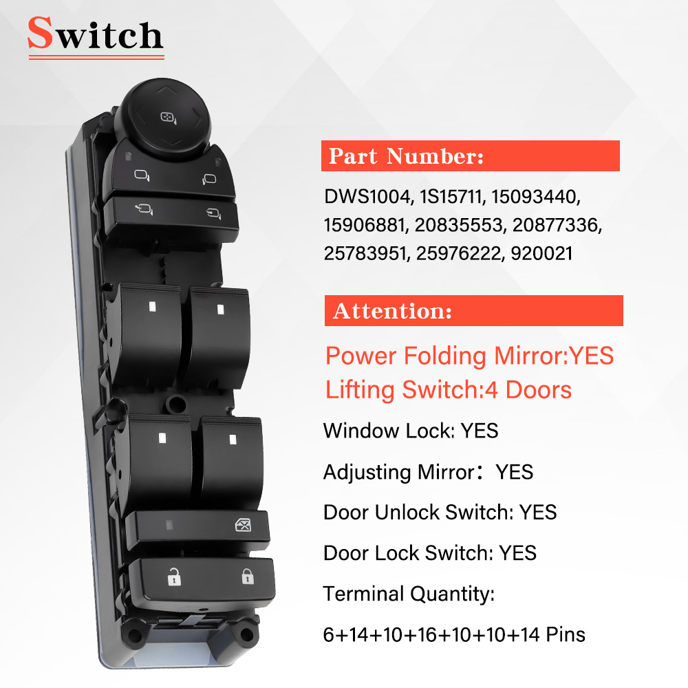 Unbranded 20835553 Power Window & Mirror Switch Driver Side for 2007-2014 Chevy Tahoe