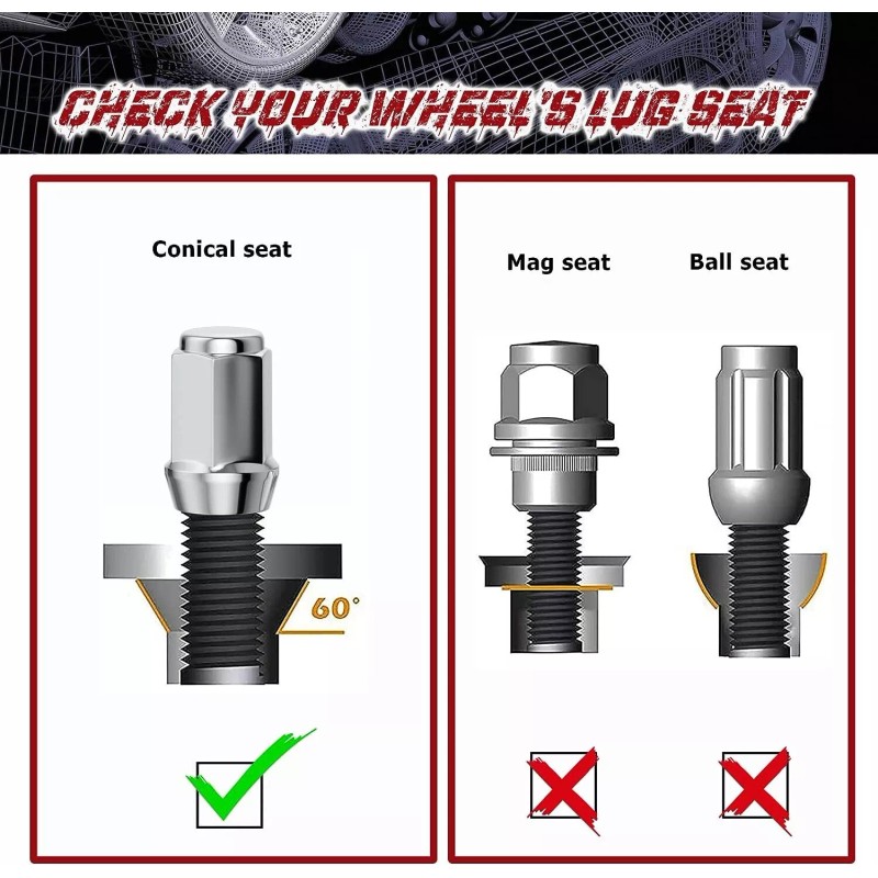 - FITS: Vehicles with wheel studs requiring a 1/2-20 thread and wheels that take a conical 60 degree seat with a 3/4" hex.