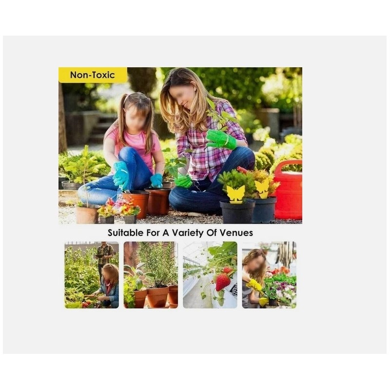 Features: Made of paper and high quality adhesive. Bright yellow color attract flying insects, and high quality glue keeps them from escaping. Specially designed for flying plant pests. Great for capturing and attracts fungus gnats, whiteflies, Mosquito,blackflies, thrips, midges and other flying insects. Apply to outdoor or indoor plant. flower shapes can make your pot plants look special. Great for outdoor or indoor plant, especially potted plants. Odorless and harmful drugs, no harm to people and pets. Easy to peel it and insert it in the plant pot or the fruit without sticky hands. Suitable for a houseplant, a home kitchen, or a garden. UV resistant and waterproof, long service cycle. Butterflies can make your pot plants look special. Package Included: Pack of 20 pcs. Keep the product out of reach of children and pets. If you touch the glue accidentally, wash your hands right away with soap or oil-based products.