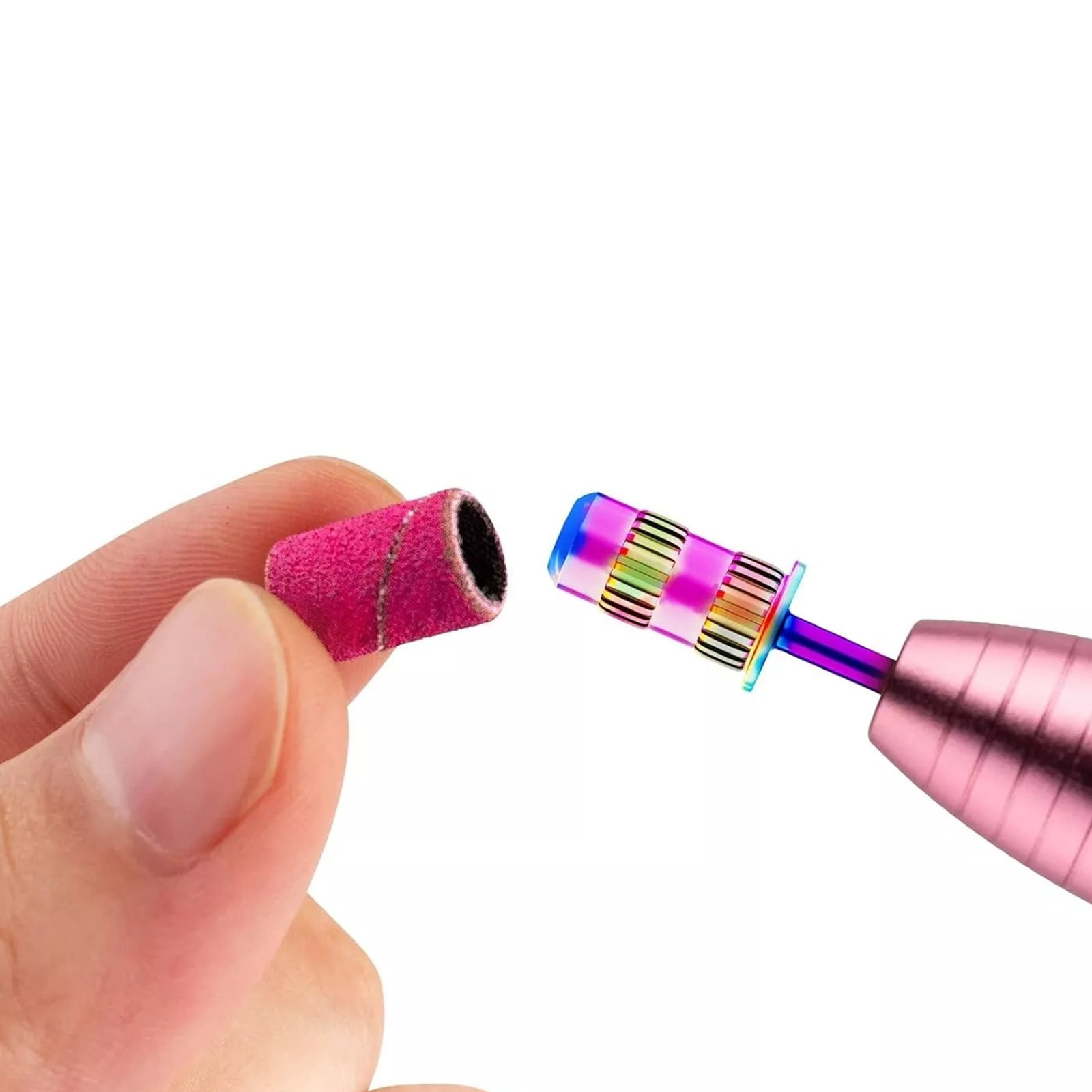 Iridescent nail bit replacement nail drill bits sanding band mandrel,for professional studio use or home use,perfect for manicures and pedicures.