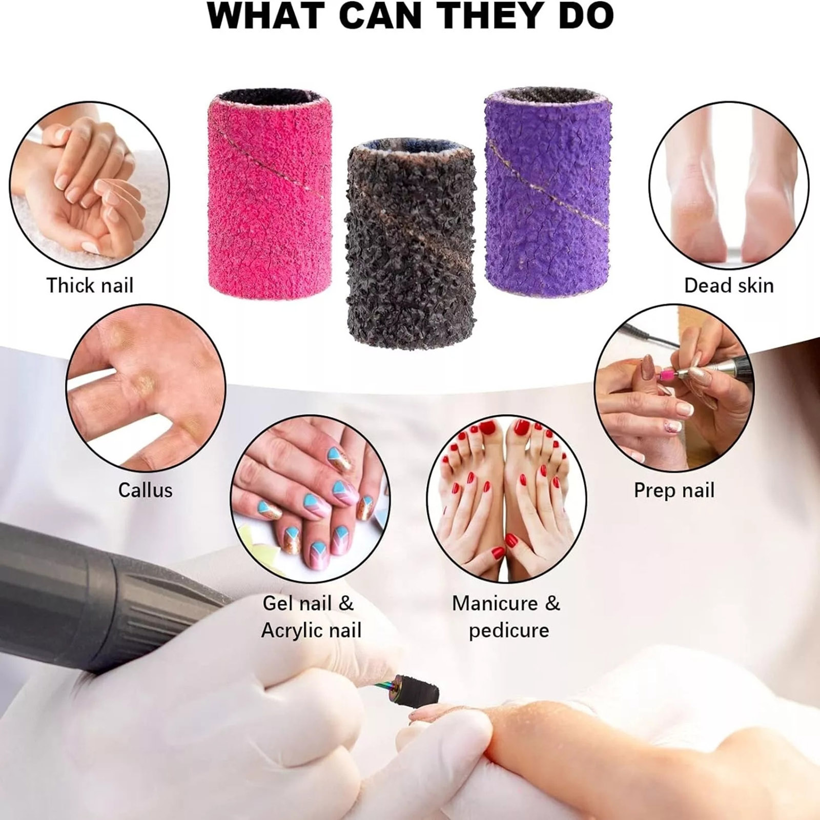 The sanding bands for electric nail file in 3 colors are made of quality sand band durable senior material,that it comes with two nail drill bits and not just one,there are three different grits and they work so handy to take off gel nail polish in a jiffy.