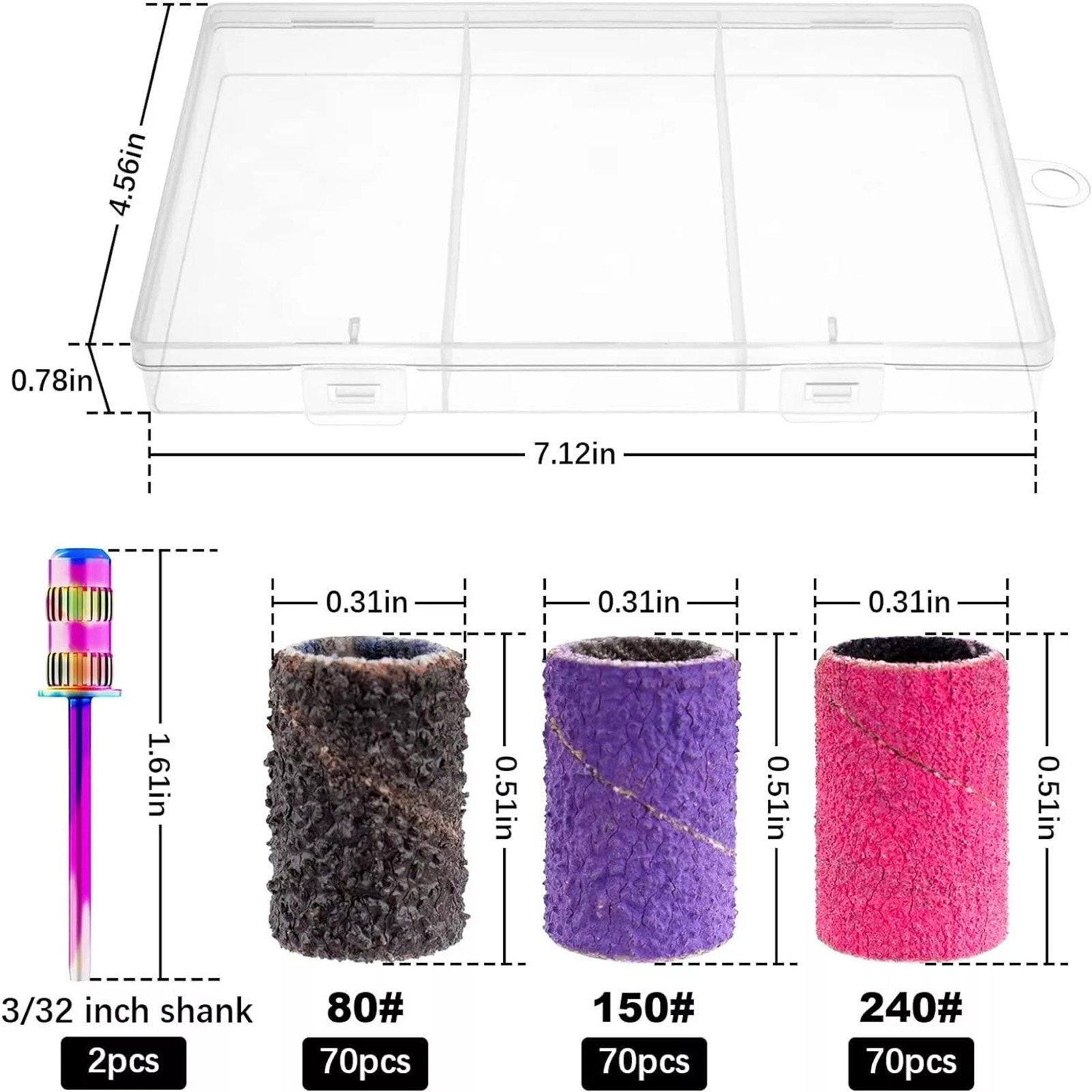 Unbranded 210Pcs Nail Sanding Bands Set For Manicure Pedicure Drill Bit #80/#150/#240 Grit