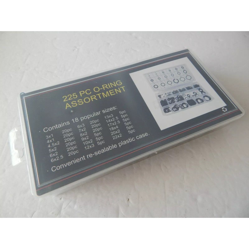 225 PC Universal Quality Rubber O-Ring Assortment with Case