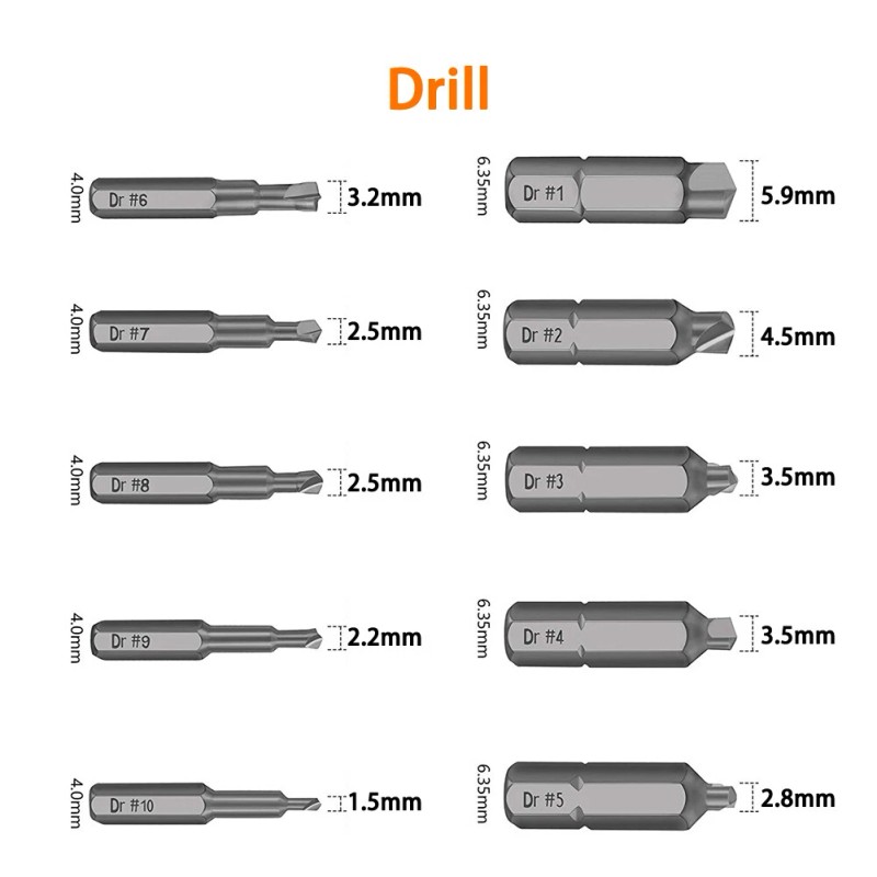 2. Use the drill(Dr) bit to drill a hole in broken screws