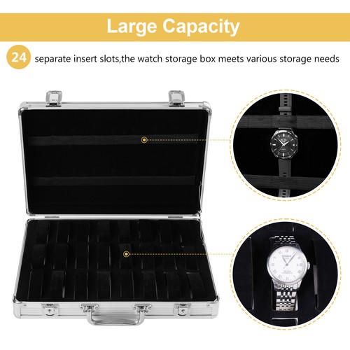 With a generous capacity to hold 24 watches in the main compartment and an additional 8 watches in the lid, this organizer provides ample space for your entire collection.