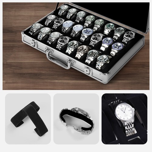 Unbranded 24+8 Grids Alluminum Watch Storage Case Lockable Watch Collection Box with Key