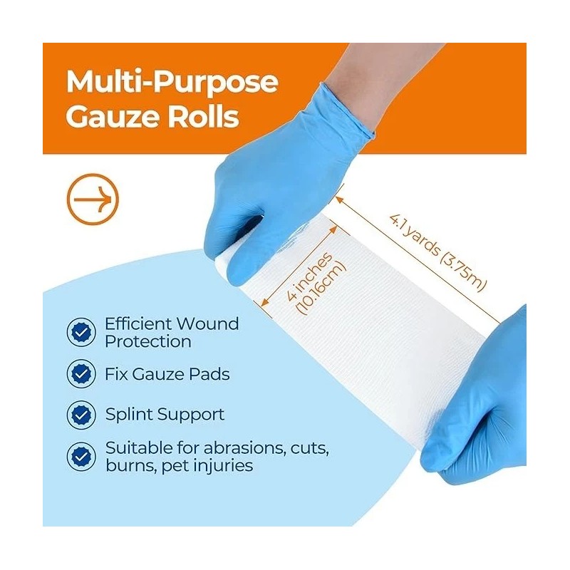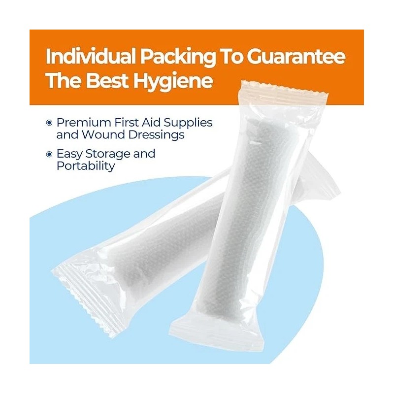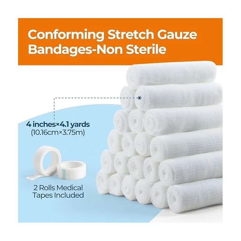 - VERSATILITY: Our 4 inch wide stretch gauze bandages are a must-have in first aid kits in hospitals, schools, gyms, homes, cars, and on the go, take a few rolls with you for emergencies, individually packaged for easy storage and portability.