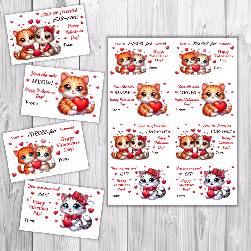 - 24 Cats and Kittens Valentines day cards for your school class party! Each card has a blank area after the word "From" for your child to write their name