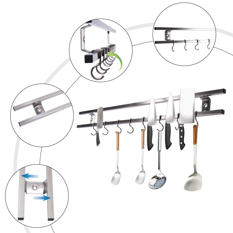 Modern Design: This Modern Magnetic Knife Holder Which Is Wall-mounted Has a Long Double-sided Polished Magnetic Surface, Together with Its Super Slim Design and S-shaped Hooks, Adding Neatness and Style to Your Kitchen.