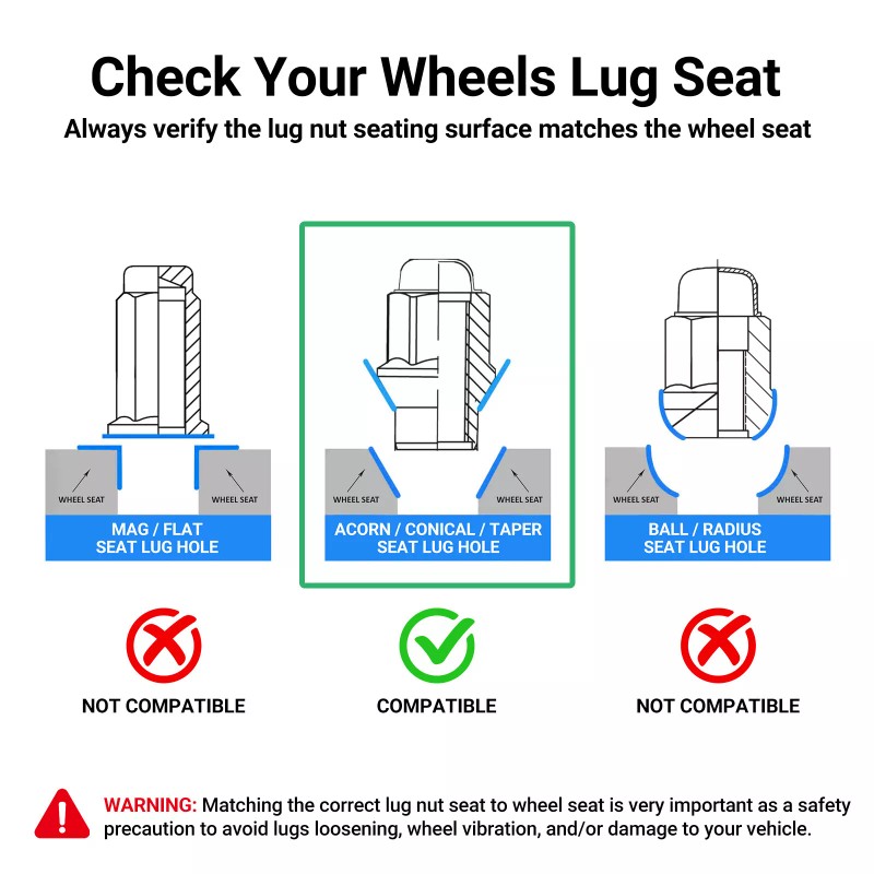 - Lug Nuts Seat Type: Conical Seat 60 Degree