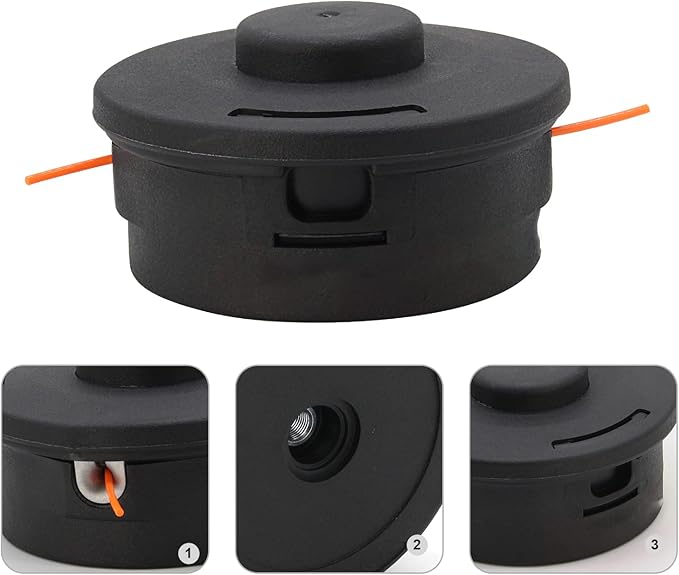 Installation Step 3Made of durable and robust heavy-duty plastic, these trimmer heads are ideal for residential trimming applications. They are compatible with thick lines and feature improved line release while trimming by simply tapping the head on the ground. |