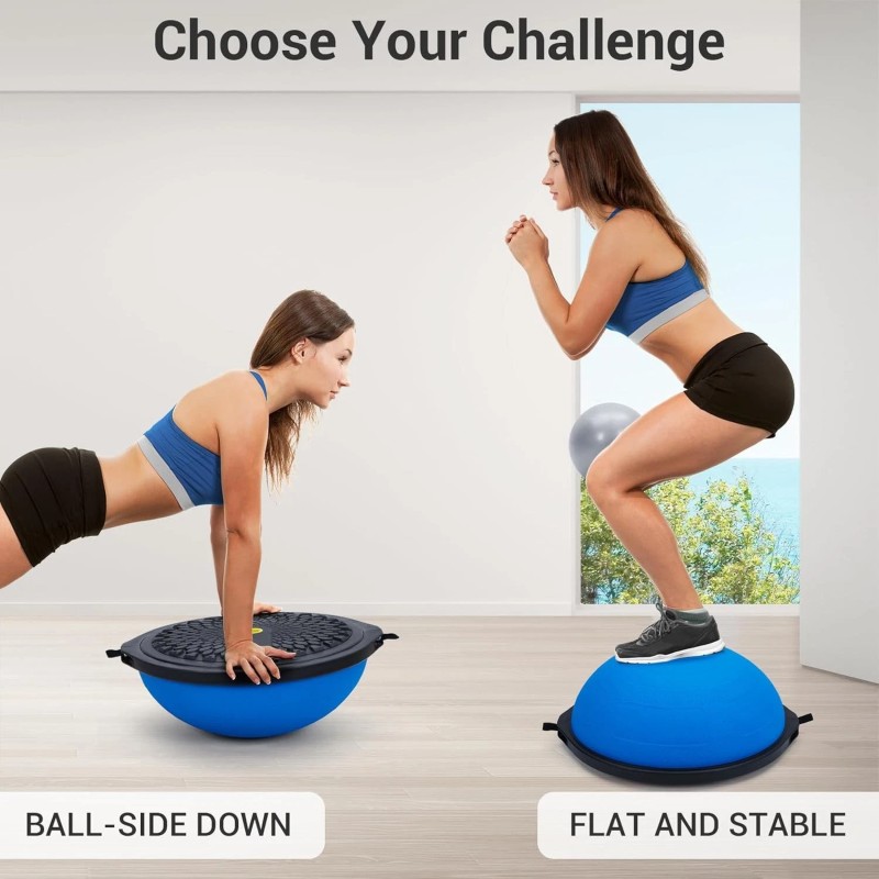 Unbranded 25in Balance Ball, 1600 lbs Half Exercise Ball with Nonslip Base, Inflatable Hal