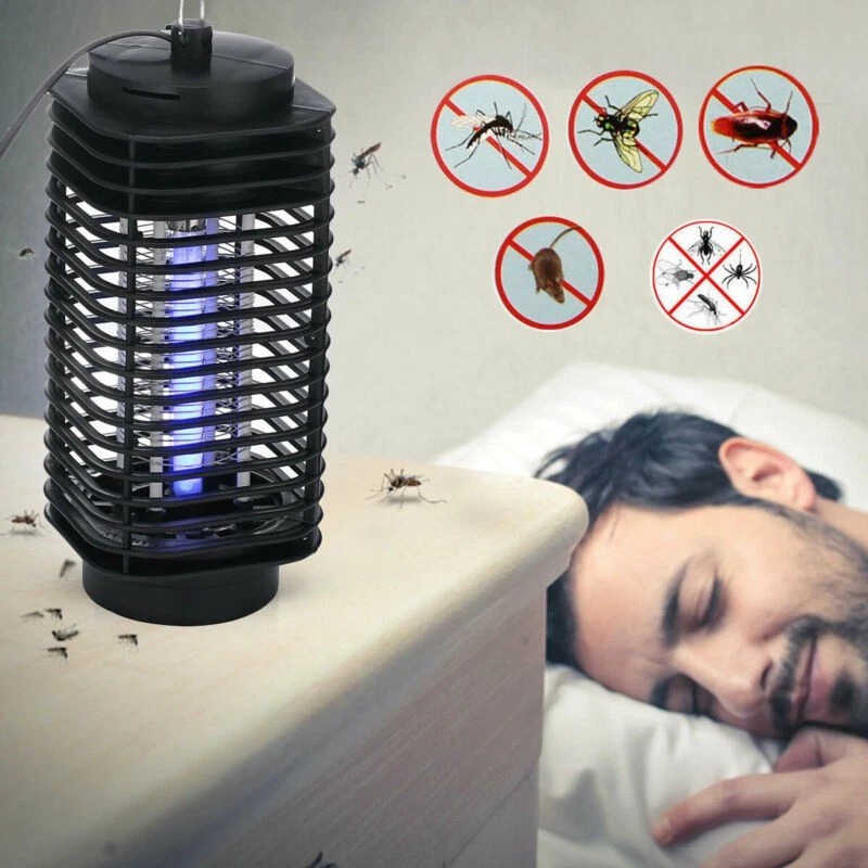 - The electronic bug zapper utilizes a high frequency blue light which is proven to be the most effective to lure flying insects during the day or night to form a practical, efficient, hygienic and automatic electronic insect extermination system. Simply plug in the bug zapper into an electrical outlet so that flying or crawling insects nearby will be attracted to the light and approach the electronically charged metal grid which will result in their electrocution.