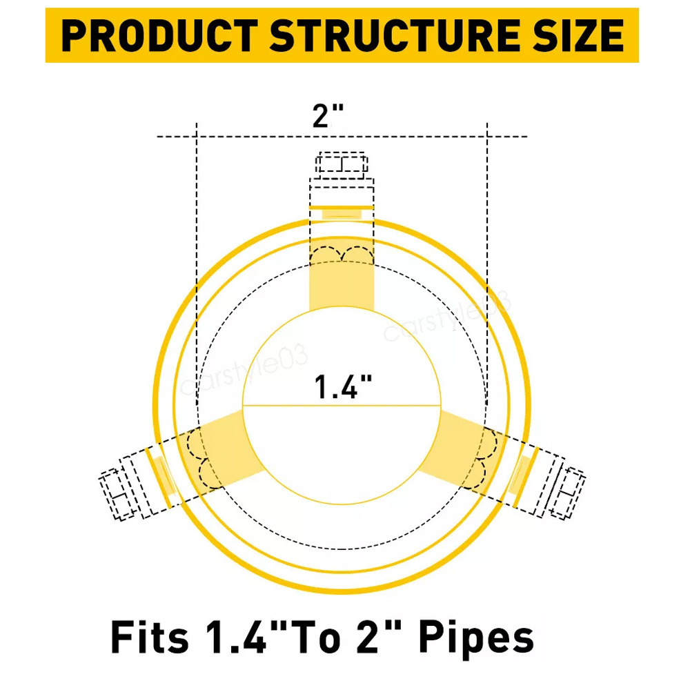 - Fitment: Fits pipes diameter from 1.5'' to 2.1''
