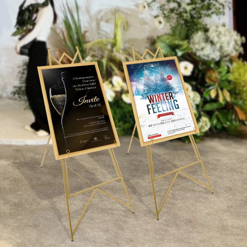It is suitable for shopping malls, restaurants, supermarkets, cinemas, etc. for weddings, celebrations, parties, art exhibitions, car shows, promotions, and other events. It is used for displaying information such as price lists, advertisements, photo frames, and posters.