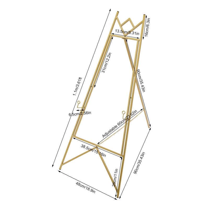 Are you still struggling to choose a cost-effective easel stand? Our product can solve your troubles. The combination of high-quality materials and exquisite craftsmanship ensures its strength and durability. Its tilt and hook position can be adjusted to meet your usage needs. With its generous appearance, it can well embellish various activity venues. In short, it is an excellent assistant for displaying photo frames or posters, etc!