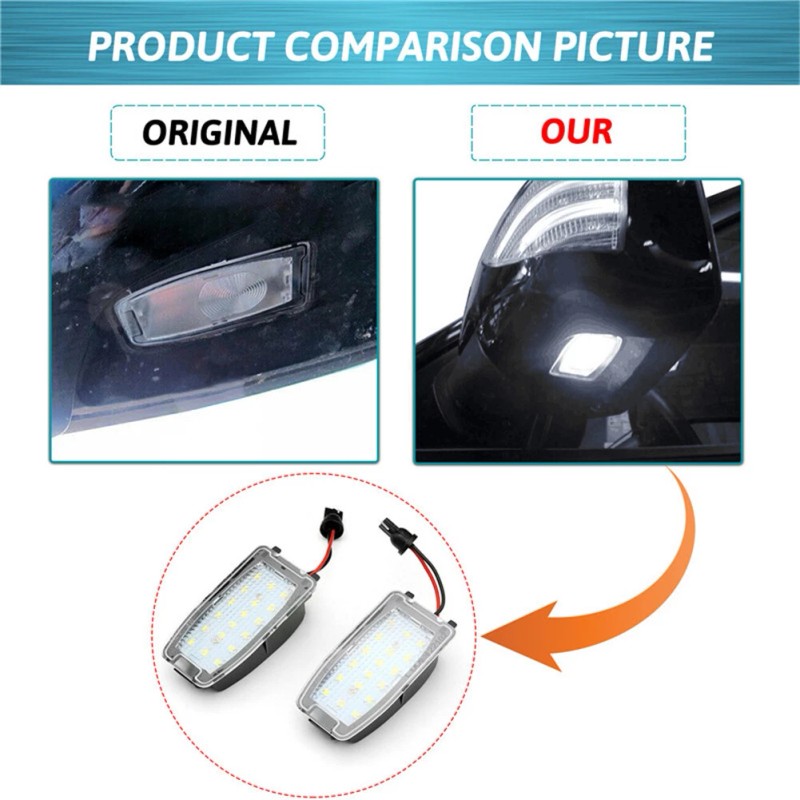 Includes one pair (driver and passenger sides) LED side mirror courtesy lights that are powered by 18-piece white 3528-SMD LED chipset for a super bright lighting output