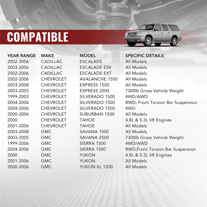 - Interchange Part Number: 12475478, 15922557, 15245582, Set Fits Both Driver Left and Passenger Right Side, 2010 2011 2012 2013 2014, Chevrolet Chevy GMC Cadillac Caddy,, Silverado 1500 Sierra 1500 Escalade Suburban 1500, Yukon Tahoe Yukon XL 1500 Avalanche 1500,, Express Savana, 1999,, 2015 esv ext,, 2000 2001 2002 2003 2004 2005 2006 2007 2008 2009,, for, sl sle slt 4.3l 4.8l pick up 5.3l,, truck platinum premium high,, ls lt ltz wt trucks hybrid
