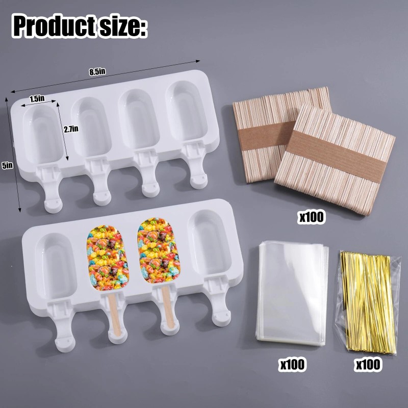 Unbranded 2pcs Ice Cream Pop Molds with 100pcs Sticks for Crispy Treat Making Popsicle