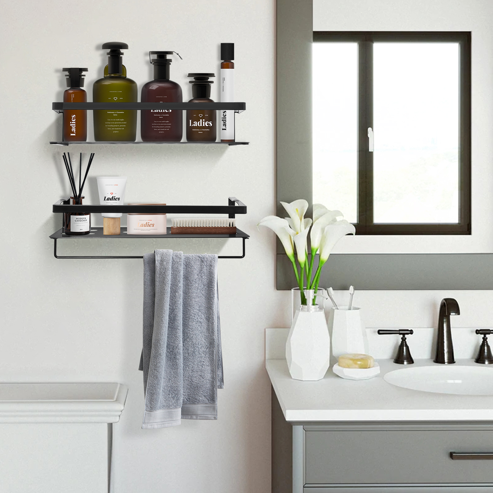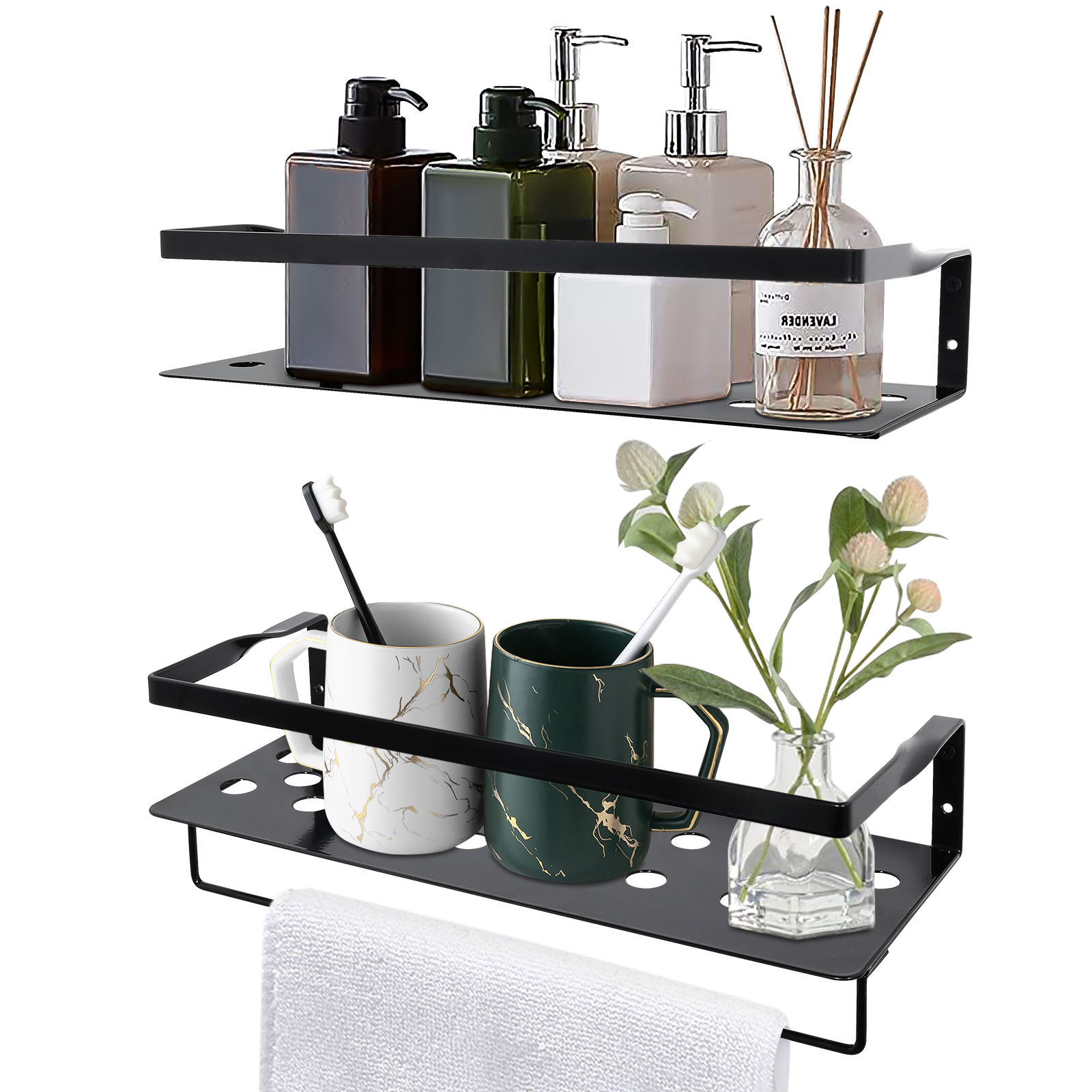 Unbranded 2Pcs Iron Floating Shelves Spice Storage Rack Wall-Mounted Shelf W / Towel Bar