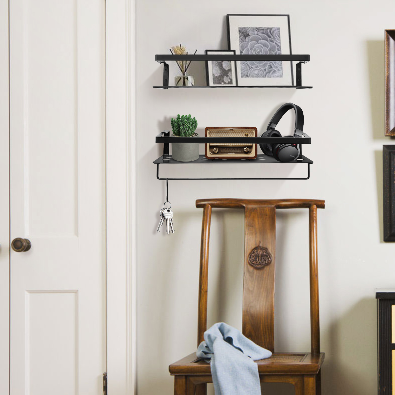 With a 2.9" high three-sided guardrail design, effectively avoiding the falling of items. With a towel rail of the bathroom shelf, you can hang towels, clothes, kitchen utensils, prizes and other supplies. This beautiful wall shelf is a great way to display your collection and makes a great gift idea for your friends and family.