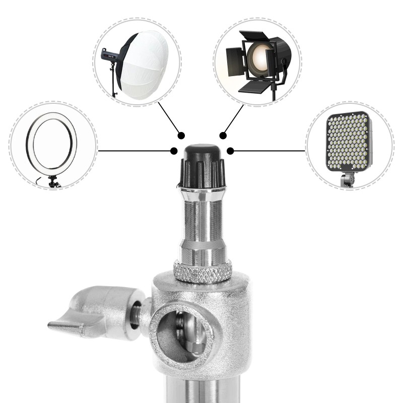 This product can be widely used in photography studios, live streaming rooms, and more. It is ideal for mounting LED lights, ring lights, mono lights, strobe lights, softboxes, reflectors, and other photography equipment.