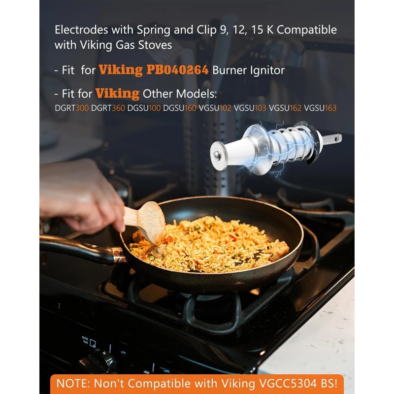 2PCS Replace for Viking Gas Range Burner Ignitor, PB040264 Spark, Replacement Electrode with Spring and Clip - Compatible with Viking Range 9, 12, 15 K