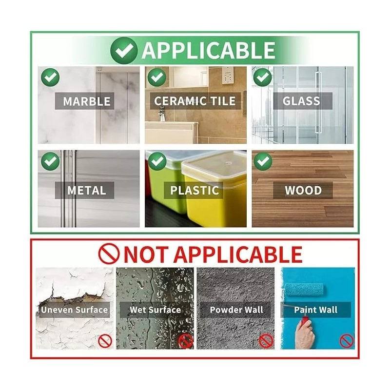 【Product Features】Transparent: ✔️. UV-resistant: ✔️. Age-resistant: ✔️. Reusable:✔️. Residue-free: ✔️. Removable:✔️. Waterproof: ✔️. Oil- and grease-resistant: ❌. Holds up to: 1pound/10cm. Area of use: Indoor and Outdoor. Application temperature: from 0℉ to 200℉. Thickness:2000 µm