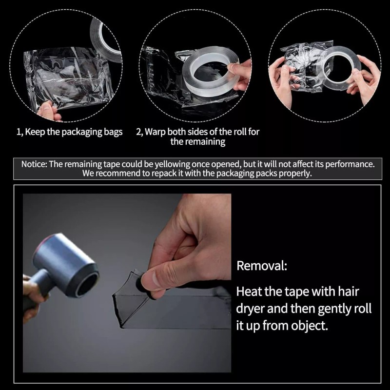 Washable, Reusable & Traceless- Strong double sided tape heavy duty is reusable, leaving no residue or glue when removed. When tape double side stick washable gets dirty, you can wash residue off the surface with water and let it dry naturally to regain its high stickiness. Do Not use any other wipes or detergent. Make any changes whenever you need without damaging your walls and furniture!