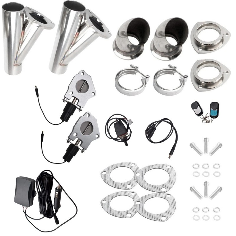 Unbranded 2x 2.25" Electric Exhaust Valve Y Pipe Kit w/ Remote Switch