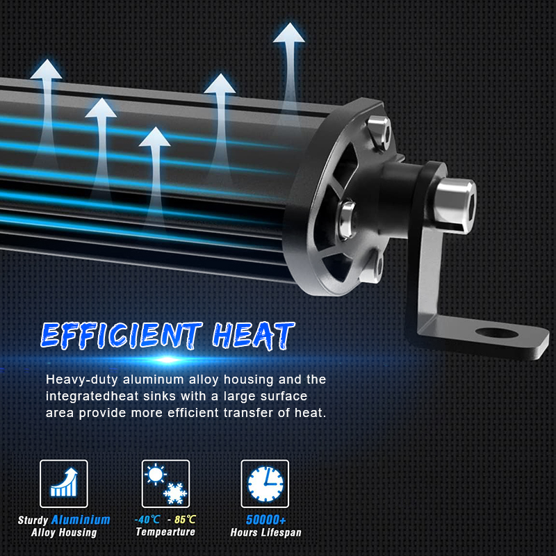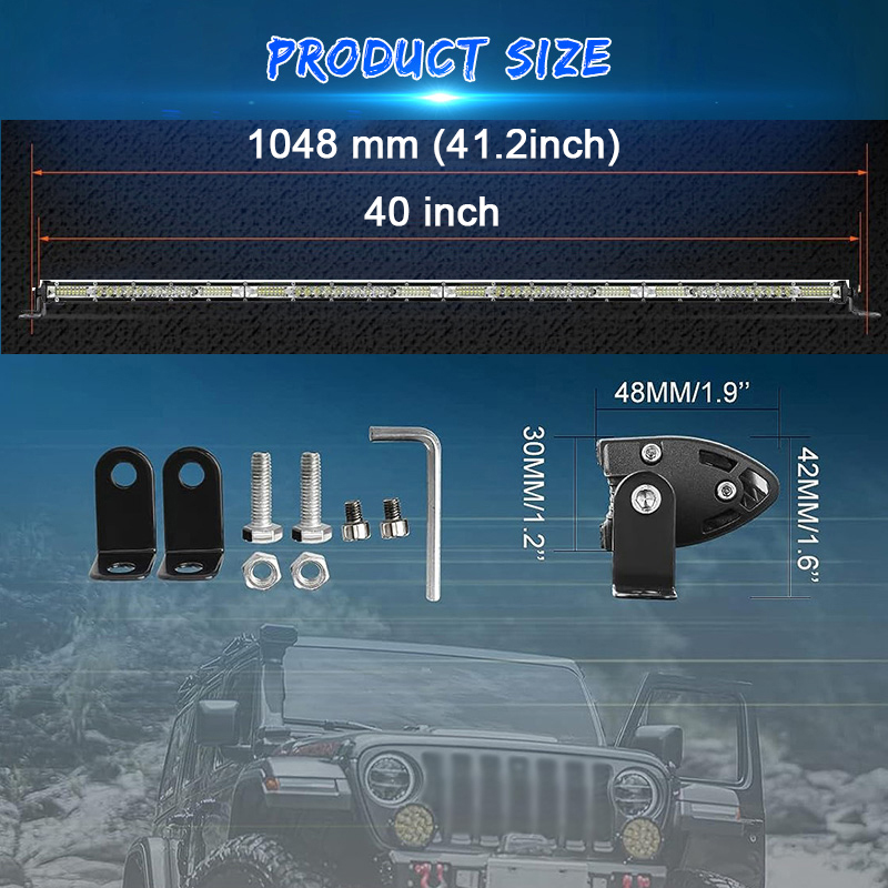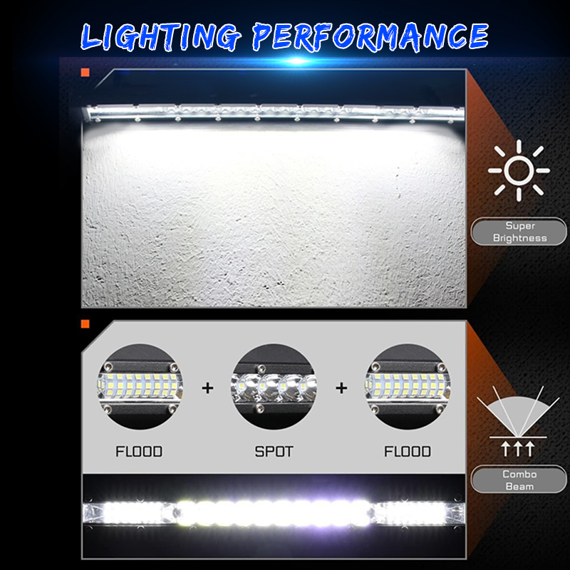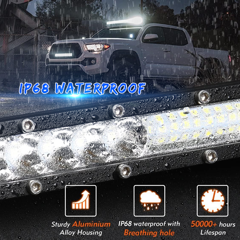 SLIM DESIGN BUT ACHIEVE HIGH LUMENS OUTPUT: Without sacrificing brightness, only 1.2 inch thick super slim LED light bars and low-profile housing allows them to fit in any location maintaining the original look of the vehicle; the slim design allows the light bars to have less air resistance and minimizes the wind noise.