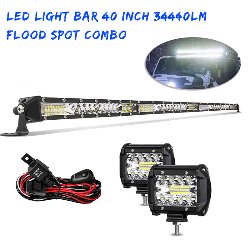 40" LED LIGHT BAR FLOOD SPOT COMBO BEAM OFF ROAD LIGHTS 2PC 4INCH 60W SPOT DRIVING FOG LIGHTS WITH ROCKER SWITCH HARNESS WIRING FOR TRUCKS ATV UTV JEEP BOAT PICKUP