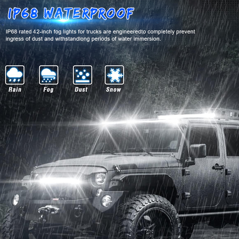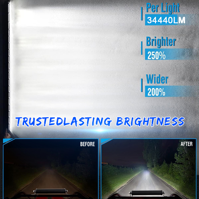 CUSTOMIZED HALF CONVEX REFLECTOR: The half convex reflector lessens the stray light emission, and produces a more precise driving beam pattern. Equipped with both a hyper spot reflector providing long distance reach and a hyper flood reflector for a wide cast of light, 40 inch LED light bar delivers 34,440LM with combo beams, nothing will stand in your way.