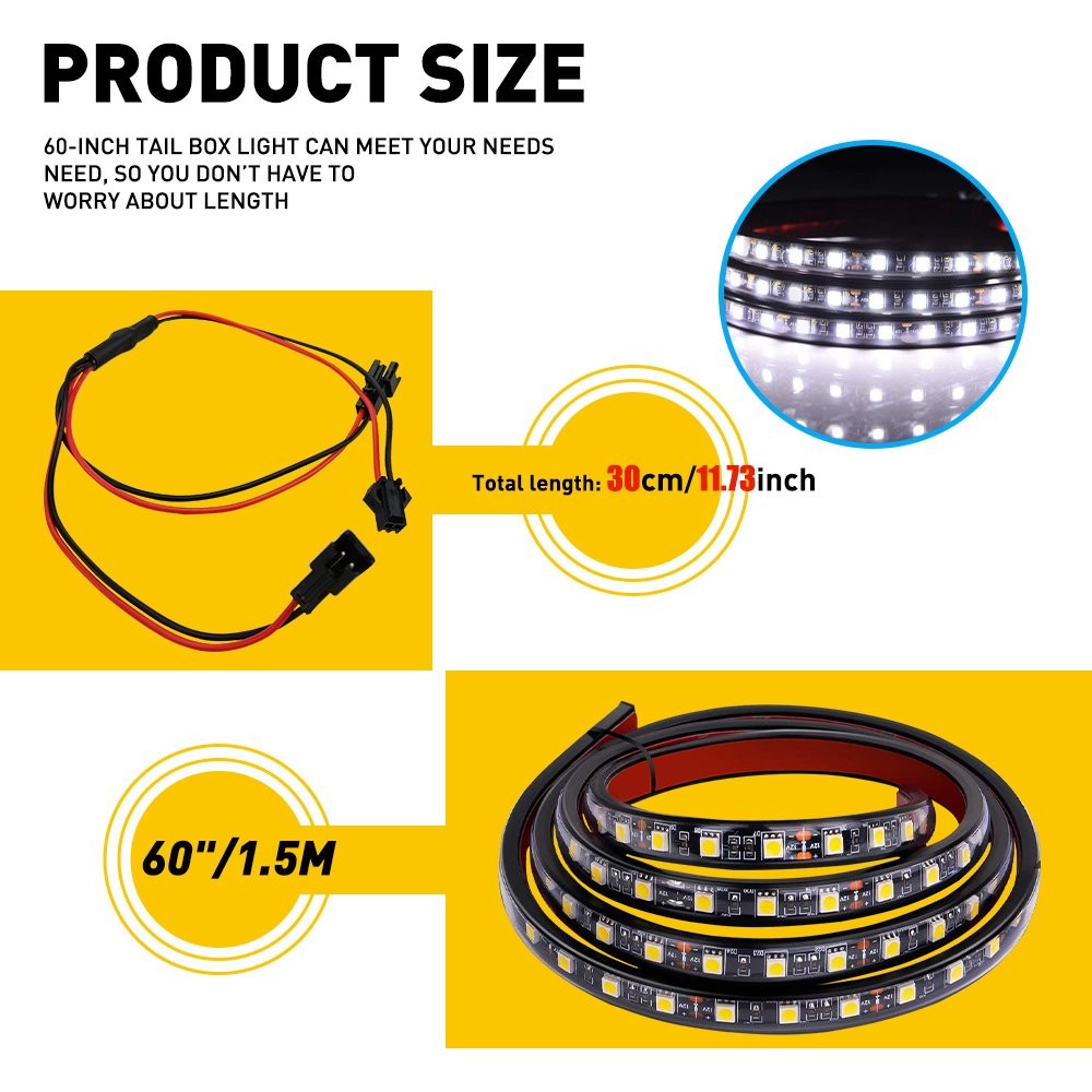 Package Includes: 2x 60 Inch Truck Bed White LED Light Strips