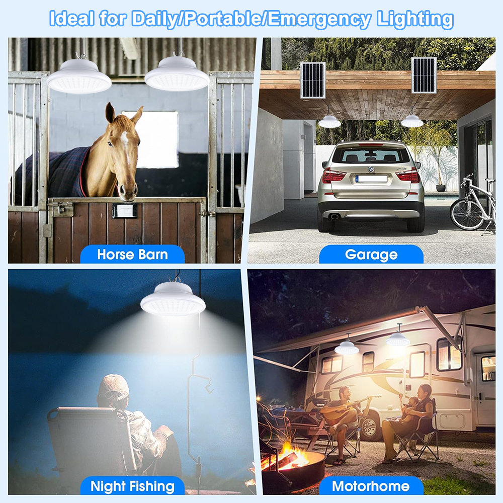 Wide Application: The light is perfect for indoor&outdoor and it is solar powered with rechargable large battery.Suitable for garden,yard,patio,tent,chicken coop,gazebo,porch,balcony,landscape,shed and more.
