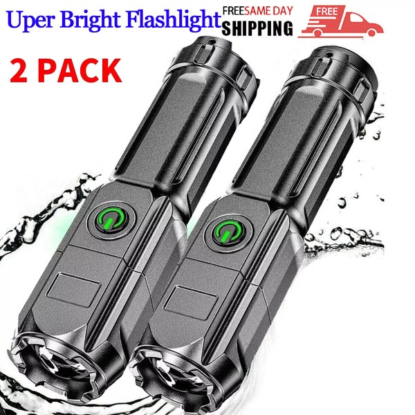 Rechargeable 990000Lm Led Flashlight Torch Zoomable Tactical Police Super BrightDESCRIPTION: 100% Brand New and High Quality Product Introduction: capacity: 1200mAh Charging: USB charging Lighting distance: 500m Focusing method: telescopic focusing Power: 5W Lamp beads: XPE Material: ABS Size: about 13 * 3.5cm quantity: 2 Package includes: 2* flashlight body 2* charging cable