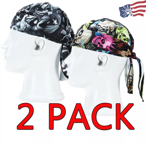 Unbranded 2x Durag Du-rag Headwear Head Wrap Skull Cap Doo Do Rag Bandana Headband Beanie