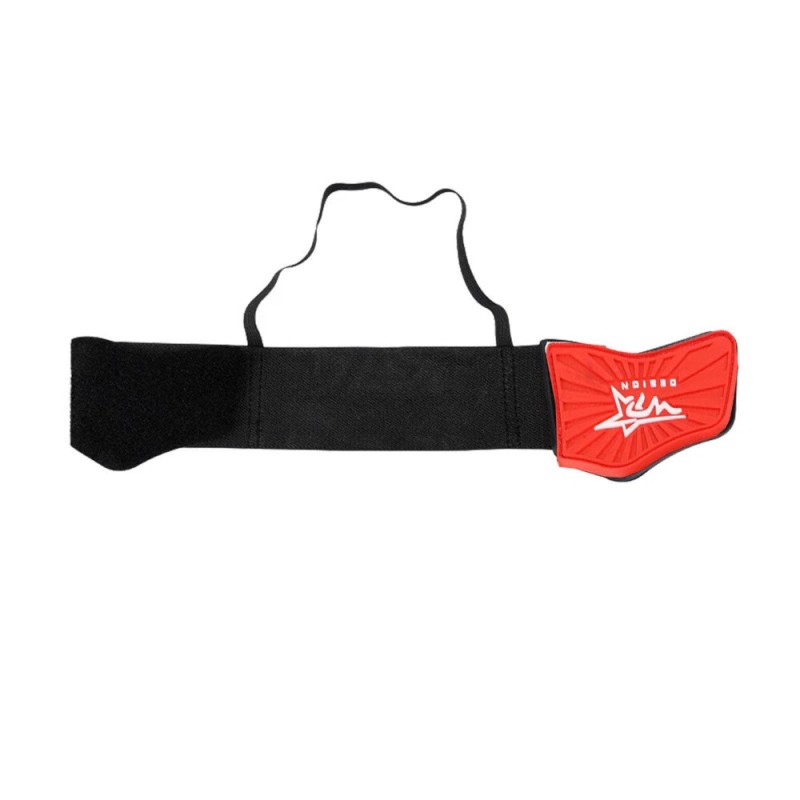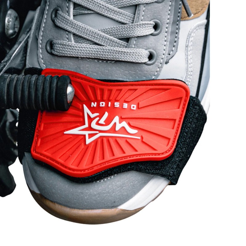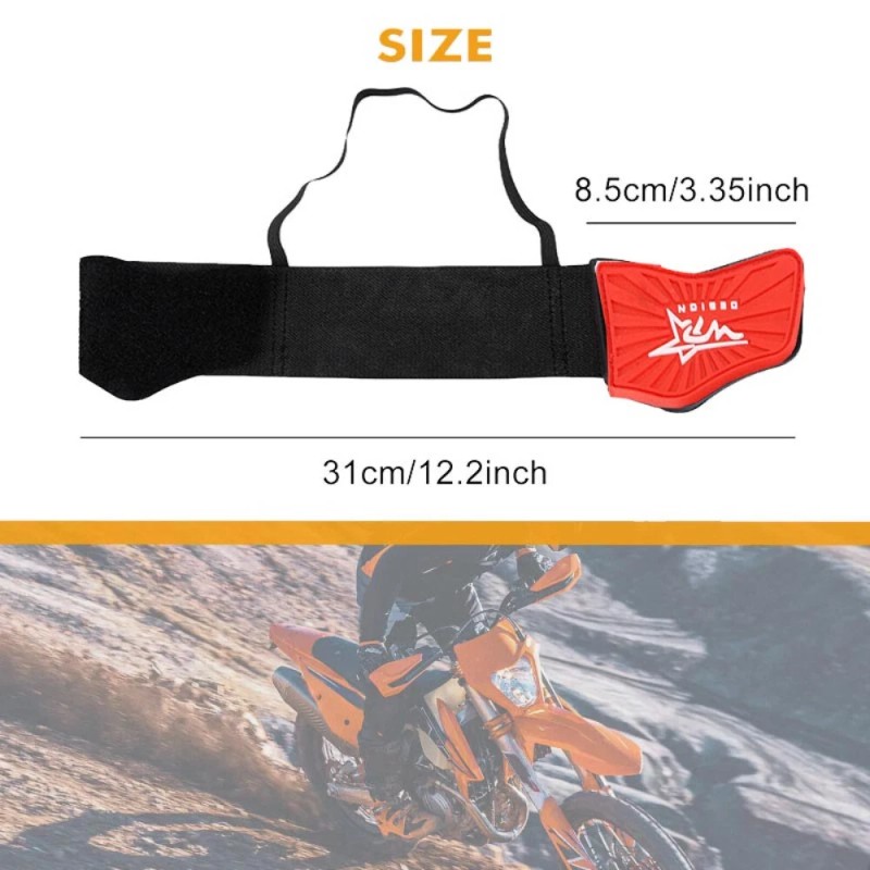 during motorcycle gear changes. Shoe protective cover has a strap to